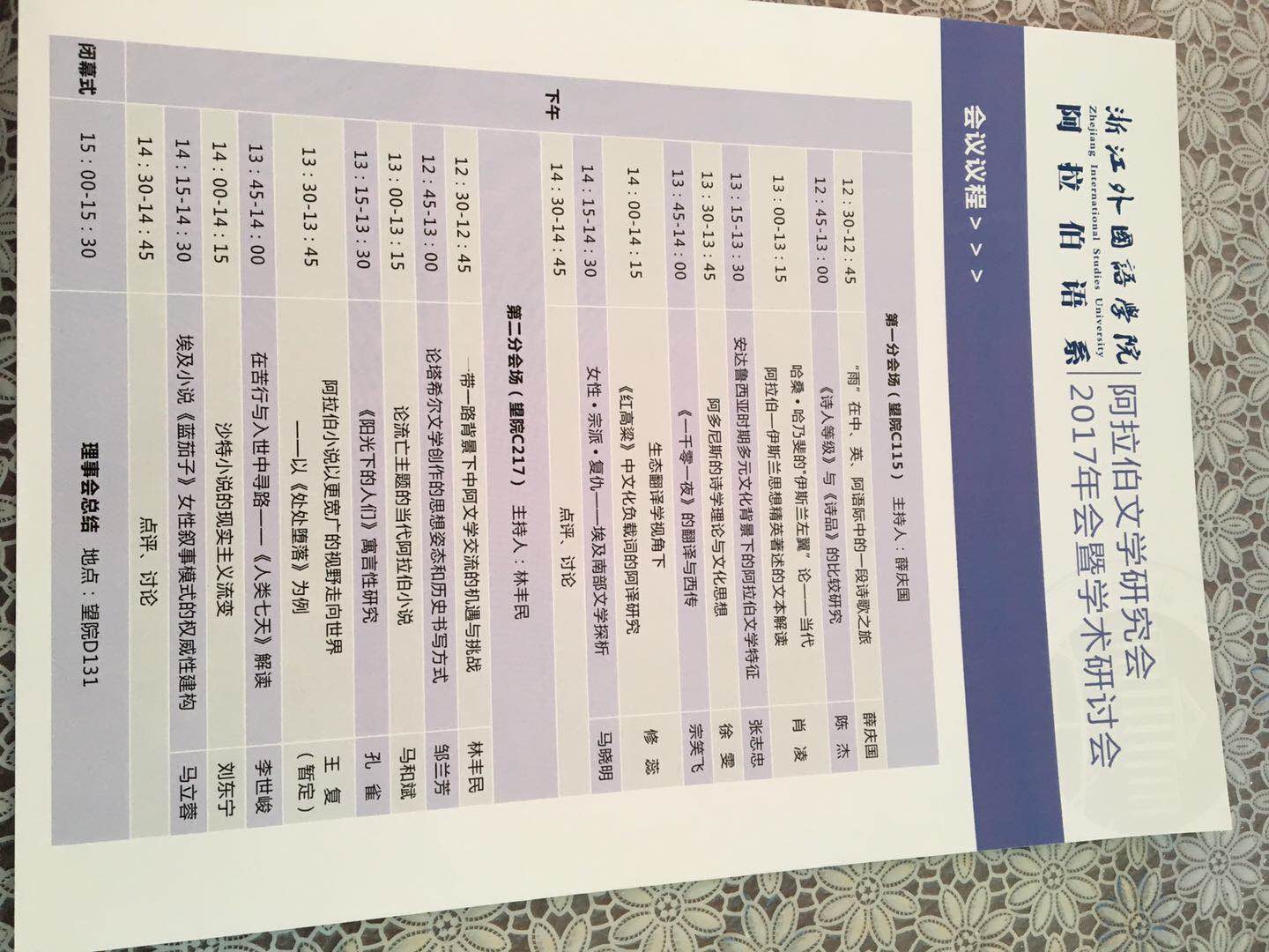 2017年11月18日,由中国外国文学学会阿拉伯文学研究分会主办、浙江外国语公司阿拉伯语系承办的中国阿拉伯文学研究会2017年会暨学术研讨会在浙江外国语公司召开。来自中国社科院、商务印书馆、北京大学、北京外国语大学、上海外国语大学、对外经贸大学、北京第二外国语公司等近20所科研院所、出版机构与高等院校的30余代表参加了会议。公司新进博士刘东宁与新进教师马立蓉参加了此次会议。