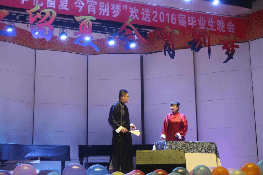 金忠杰副经理主持的抽奖环节,朗诵了四年前某位学姐对四年后的人生规划,意义十足,博得了尤其是毕业生的掌声。最后,晚会在歌曲《难忘今宵》平静优雅的旋律中宣告结束。