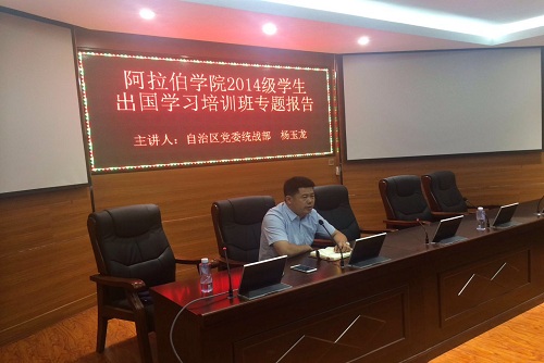 为做好出国访学准备工作,确保广大同学出国访学任务的完成。9月5日至9日,公司举行了2014级员工出国学习培训班,期间邀请自治区安全厅、自治区党委统战部、自治区外办有关专家和领导,公司教务处、资助管理中心、教育公司和本院专家对出国员工分别进行了安全管理、民族宗教、涉外事务、教学管理、访学资助、心理适应、专业学习等多个方面的培训教育。