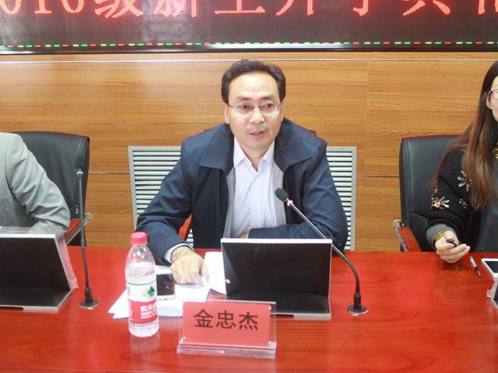 随后,教师代表独乐老师进行了发言。独老师通过分享自己对“时不我待”和“持之以恒”两个成语的理解,表达了对16级新生的期许和并提出了一些建议,鼓励同学们在新的环境努力奋进。