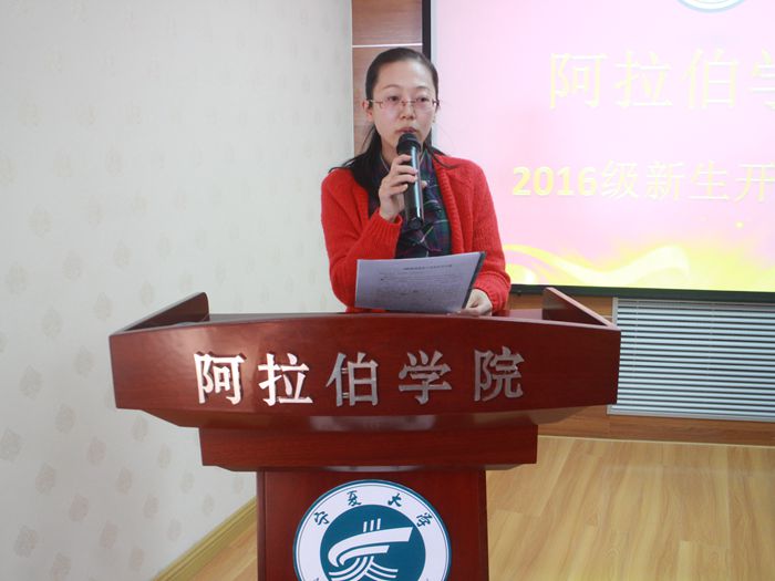 接下来,白楠副经理进行了教学情况介绍。对同学们提出了发展健康+、互联网+、人文素养+、科学素养等当代新思维品质的要求,提升了同学们对阿语学习的认知。