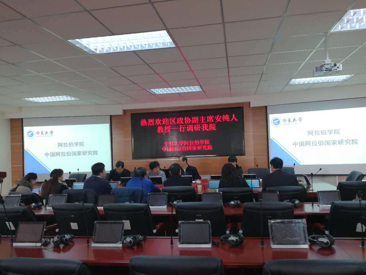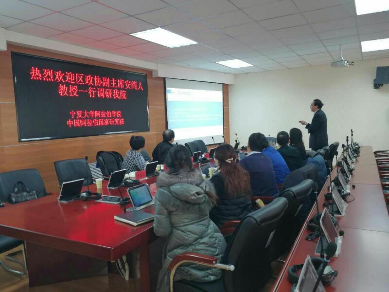 安纯人听完汇报后,就两院”在对接国家“一带一路”倡议与中国阿拉伯国家合作过程中的人才培养、学术研究、团队建设、智库作用、社会服务等方面取得的成绩给予了充分肯定,并就“两院”在外语学科与智库建设发展方面提出的建议,需要自治区协调解决的问题。
