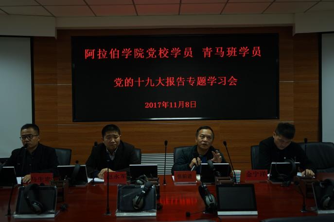 张前进书记首先传达了自治区党委书记石泰峰来校宣讲党的十九大精神的主要内容,结合个人学习体会,与各位学员做了交流。张前进书记指出,党的十九大在党和国家发展史上具有划时代的里程碑意义,进一步指明了党和国家事业的前进方向,为推动党和国家事业发展提供了坚强政治保证和组织保证。