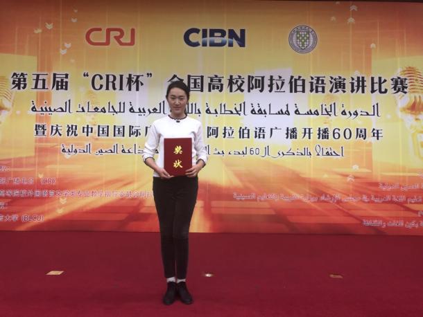 11月23日,由中国国际广播电台主办的第五届“CRI杯”全国高校阿拉伯语演讲比赛圆满落幕。公司王艳老师带领朱琳同学代表公司参赛,并取得了大赛高年级组全国三等奖的好成绩。