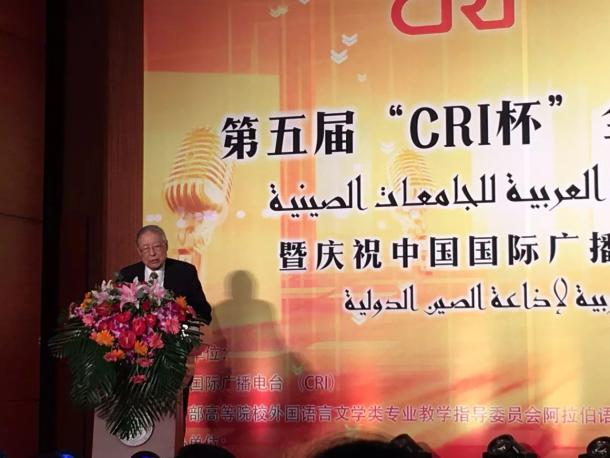 外交部原副部长杨福昌进行大赛致辞时表示:翻译的工作是值得尊敬的,没有翻译的努力,很多事情是沟通不了的。希望参加演讲比赛的同学们,不断提升语言造诣,为将来中阿友谊的发展做出贡献。