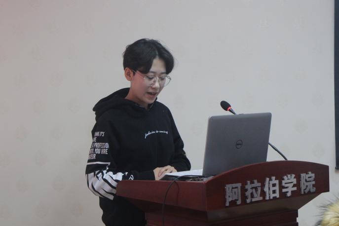 本次团日活动立足于学习党的十九大精神,结合阿拉伯语专业,以“不忘初心,砥砺前行当代老员工如何践行十九大精神”为主题,先后通过观看《外籍专家看十九大:我的“中国梦”》视频、结合公司双一流及建设开展的有关十九大知识问答和诗文朗诵等活动,让员工们相互交流学习心得,生动地将党的十九大精神及其内涵展示了出来。同时,同学们结合自身专业特点,在谈到如何践行党的十九大精神时竞相发言,讲述了如何"学好阿拉伯语,更好地构建世界与中国沟通的桥梁,让世界听见中国的声音"。由四位同学带来的"喜迎十九大,永远跟党走"诗文朗诵获得了老师们及同学们的阵阵掌声,第五届“CRI”全国高校阿拉伯语演讲比赛三等奖获得者朱琳为同学们讲解了作为一个阿语人如何做到“不忘初心,砥砺前行”。