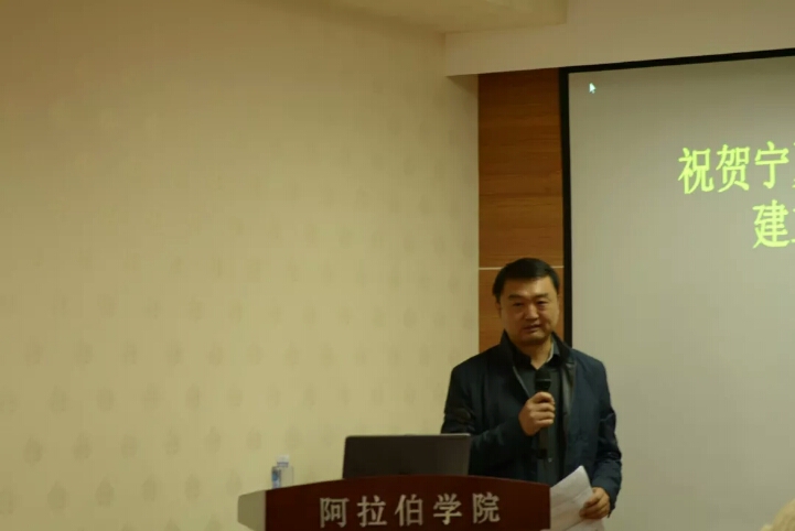 座谈会在谢应忠副董事长的致辞下隆重开始,谢应忠副董事长在讲话中要求两院发扬校庆精神,在新时代下,加快“三位一体”人才培养体系建设,推进阿拉伯语“新文科”“新语言教育”建设和发展,服务“一带一路”倡议。
