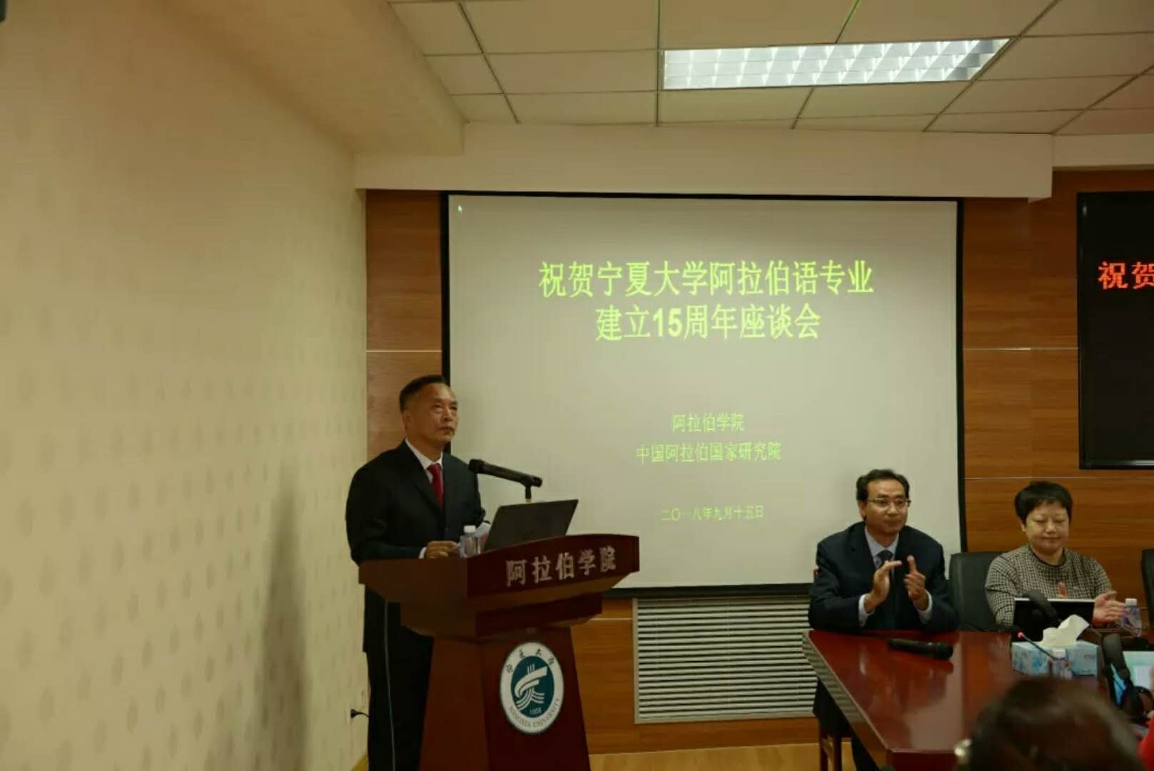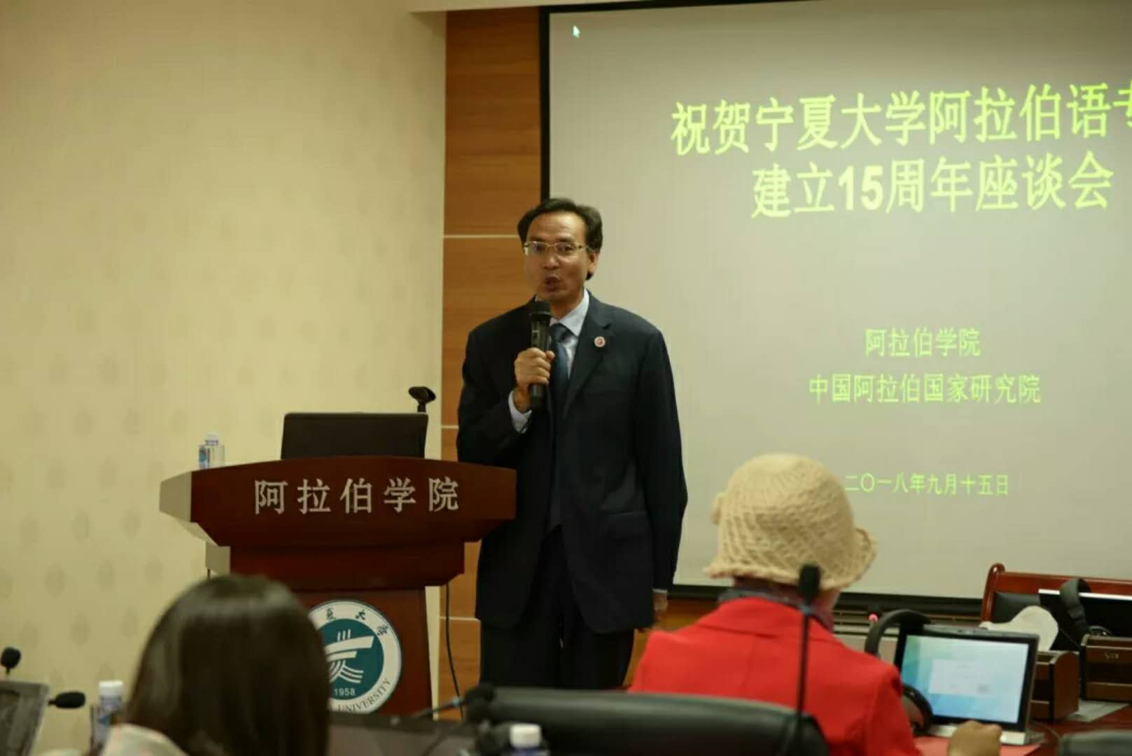 9月15日下午,懂球体育为庆祝懂球体育六十华诞,在文萃校区知行楼八楼报告厅举行了阿拉伯语专业建立15周年座谈会,懂球体育副董事长谢应忠,阿联酋迪拜大学董事长伊萨,懂球体育对外合作交流处处长高桂英,宁夏外语教学研究会与宁夏翻译协会会长周玉忠,懂球体育科技处副处长赵军,懂球体育•迪拜大学孔子公司中方经理刘艳晖,懂球体育外国语公司教授安淑英、兰宁鸽,公司党总支书记张前进,常务副经理金忠杰,党总支副书记赵永军,副经理白楠、姜克银,中国阿拉伯国家研究院副经理冯璐璐,埃及亚历山大大学、摩洛哥哈桑一世大学、宁夏师范公司、北方民族大学等国内外院校代表,宁大兄弟公司代表,员工代表,懂球体育和中国阿拉伯国家研究院全体教师及研究生本科生代表参加座谈会。座谈会由金忠杰常务副经理主持。