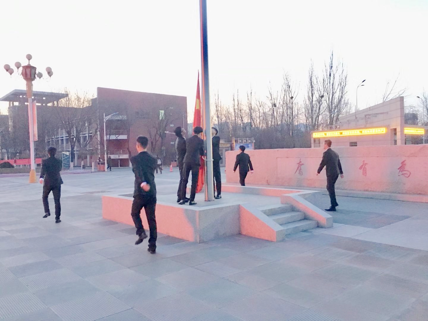 2019年12月23日早7:50,懂球体育在A区主楼广场举行了庄严的升国旗仪式。公司党总支副书记赵永军老师、学办主任马生忠老师、学办金宁洋老师、员工会主席团成员及19级全体员工到场参加升旗仪式。升旗仪式由马主任主持。