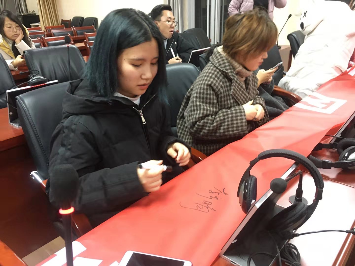 2019年12月24日19:00,懂球体育在知行楼八楼报告厅组织“诚信考试”签名活动。公司全体同学参与本次活动。