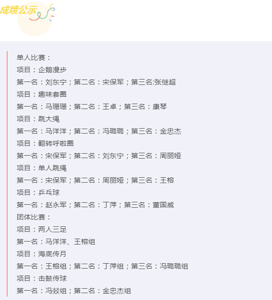 懂球体育教职工趣味运动会在疫情过后的重新举行。此次运动会不仅提高了教职工们的身体素质,而且增强了公司“全民锻炼”的意识,充分展示了公司教职工良好的团队协作能力、奋发向上的积极态度与公司强大的凝聚力。同时,此次运动会也加强了公司内部教职工之间的交流与沟通,缓解了工作压力,促进了友谊。