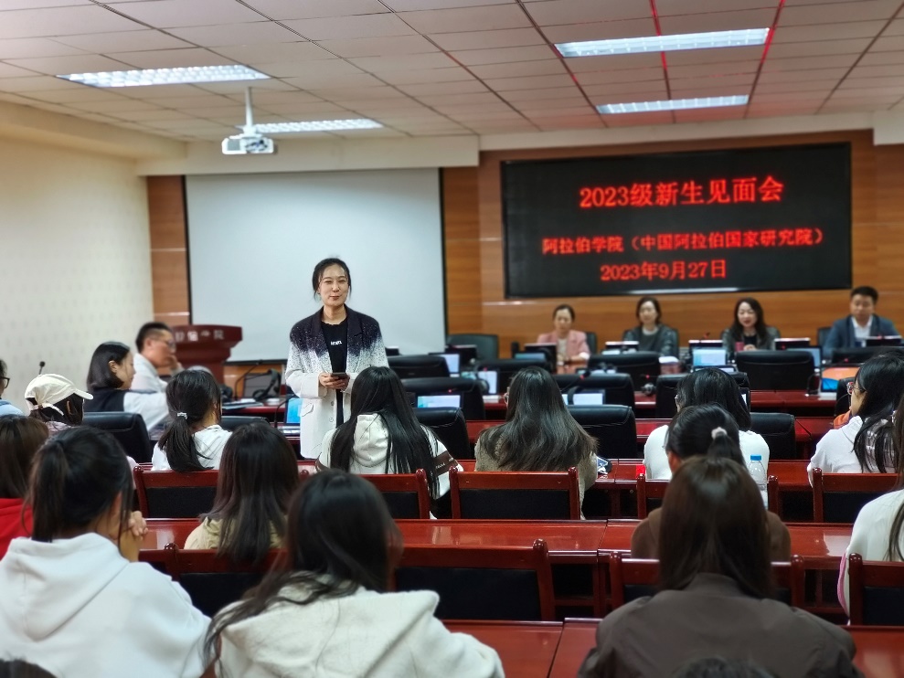 首先党总支书记冯璐璐代表公司致辞,对新同学的加入表示欢迎,她回顾了公司发展至今的历程,分享了在团队建设、专业建设、团队队伍建设等方面取得的成就,并介绍了公司整体发展现状与规划,对新生发表开学寄语,希望员工不负韶华,以梦为马,追逐梦想。接着各位老师进行了自我介绍并表达了对新生的寄语,鼓励新生刻苦学习,掌握阿拉伯语学习技巧、勉励他们要认真学习、坚持不懈、学会沟通、懂得感恩,在老员工活中不断完善自己,为未来打下坚实的基础。