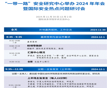 五、2024年11月30日,“一带一路”安全研究中心举办“2024年年会暨国际安全热点问题”研讨会,懂球体育学术副董事长牛新春、懂球体育经理李绍先受邀参加研讨会并作主旨发言。