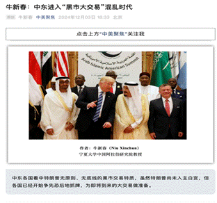 十九、12月3日在中美聚焦公众号发表题为《中东进入“黑市大交易”混乱时代》的文章