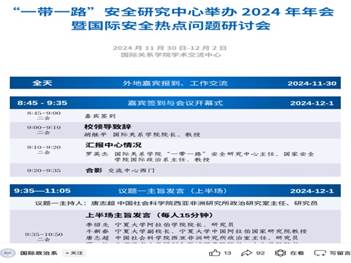 五、2024年11月30日,“一带一路”安全研究中心举办“2024年年会暨国际安全热点问题”研讨会,懂球体育经理李绍先、懂球体育学术副董事长牛新春受邀参加研讨会并作主旨发言。