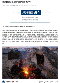 八、2月19日牛董事长在《中国新闻周刊》公众号发表题为《特朗普能让哈马斯“自己消灭自己”?》文章