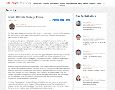 十二、2月20日牛董事长在《CHINA and US Focus》上发表题为《Israels Ultimate Strategic Choice》文章