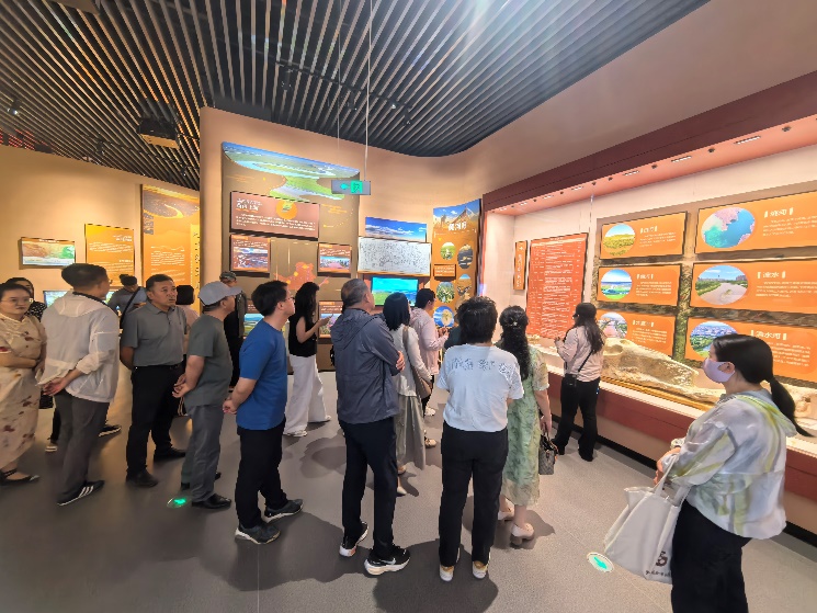 在黄河宁夏世界灌溉遗产工程遗产展示中心,在讲解员的讲解下,两院教师依次参观了序厅、黄河母亲厅、灌区千秋厅、塞上兴水厅四大展区,通过大量的实物展品、历史照片和多媒体技术,全方位展示了黄河形成发展演进、历代治水先贤的丰功伟业和宁夏引黄古灌区作为世界灌溉遗产2000多年的悠久历史、璀璨文化和辉煌成就。大家纷纷表示,要牢记习近平总书记赋予宁夏建设黄河流域生态保护与高质量先发展先行区的战略使命和时代重任,将黄河文化融入教学科研中,讲好黄河故事,讲好中华文明故事,讲好中国事故,为黄河文化的保护传承与创新发展做出应有的贡献。