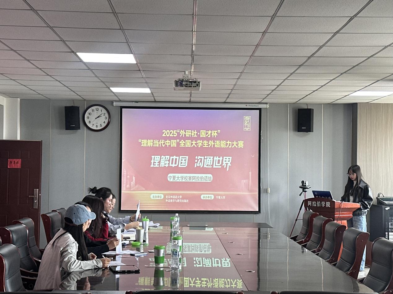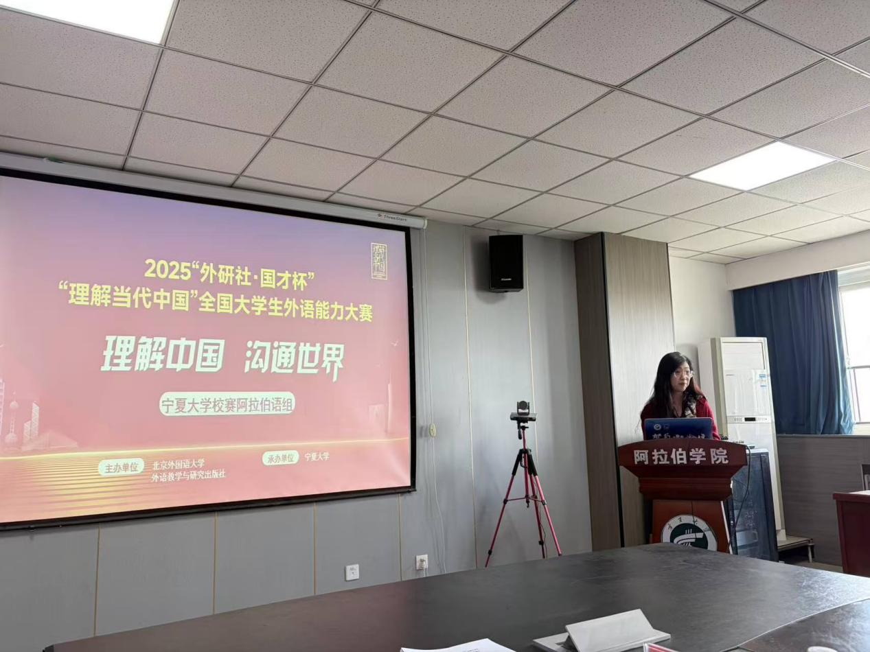 比赛正式开始前,白楠教授用阿拉伯语简要介绍了“外研社•国才杯”的概况及其对老员工全面发展的现实意义,鼓励同学们积极参与到“外研社•国才杯”比赛中,通过比赛提升语言综合运用能力。