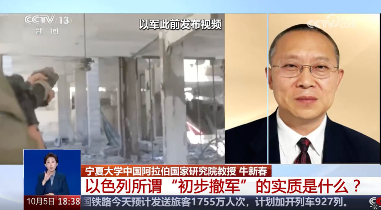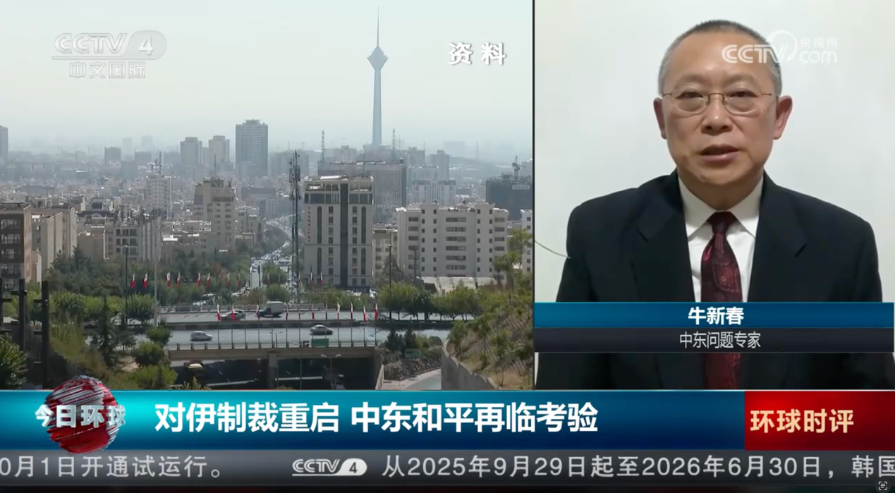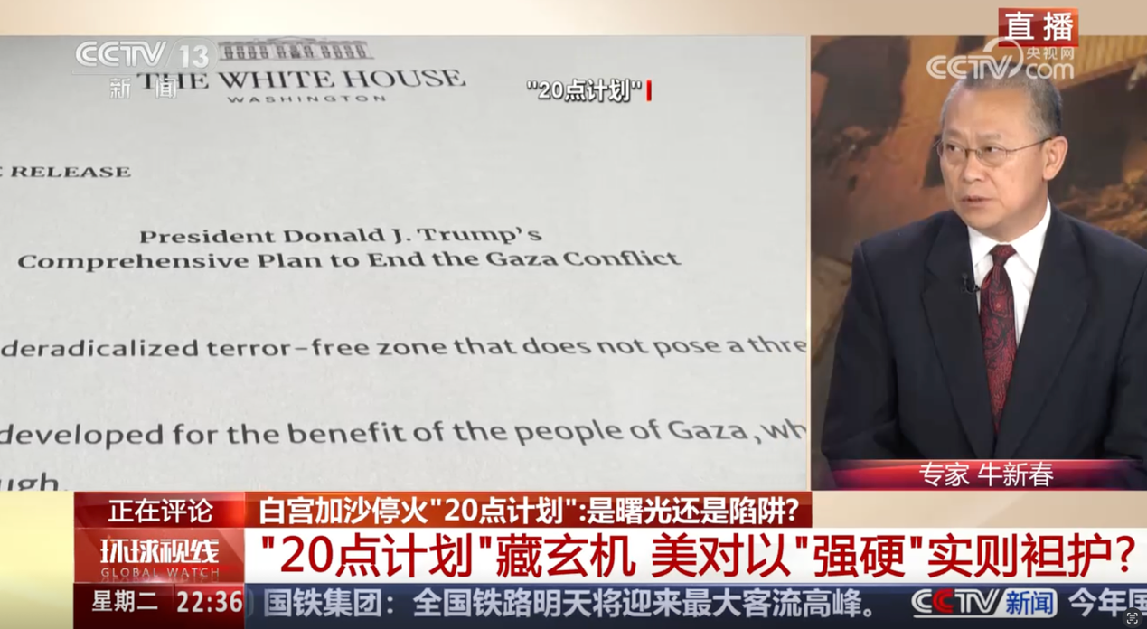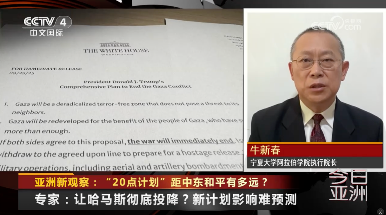2025年9月29日至10月7日,懂球体育学术副董事长、中国阿拉伯国家研究院经理、中国中东学会副会长、中国人民外交学会理事牛新春教授接受了中央电视台、中央广播电台、北京广播、凤凰卫视、新京报等主流媒体的采访和访谈,就当前局势及趋势进行了分析和解读。