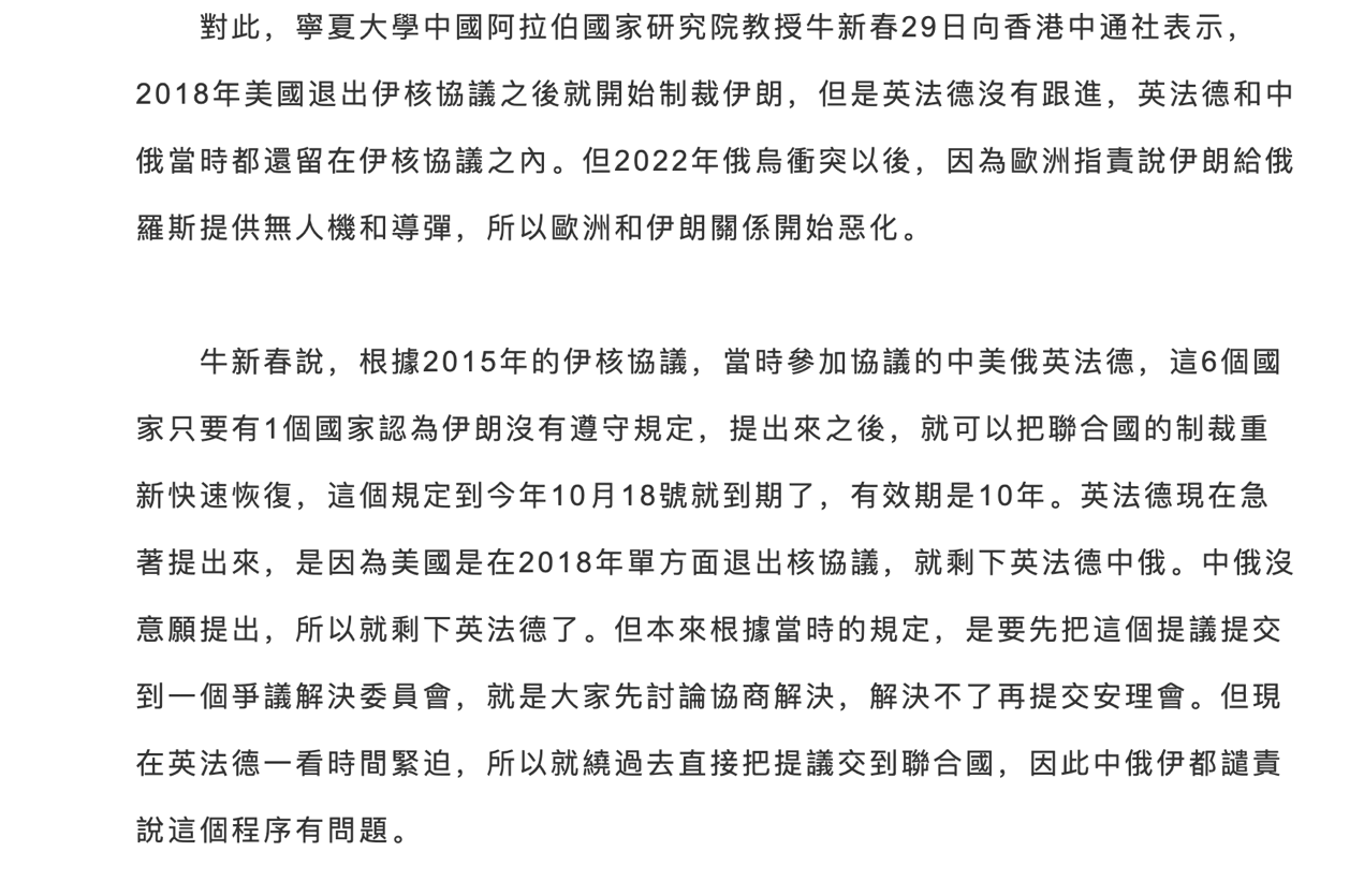 六、9月29日牛董事长接受香港新闻网《欧盟为什么突然恢复对伊朗的制裁?》一文采访
