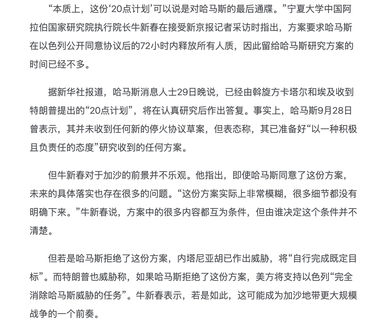 十三、9月30日牛董事长接受新京报题为《特朗普的加沙“20点计划”,能带来和平吗?》采访