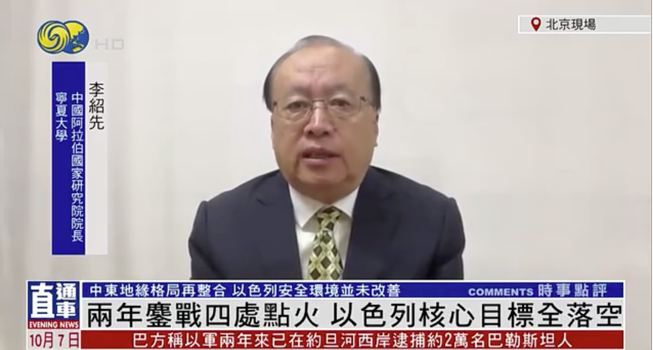 2025年10月7日,公司名誉经理、中国中东学会顾问、教育部国别与区域研究专家委员会委员、中阿博览会顾问委员会主任委员李绍先接受了中央电视台、凤凰卫视采访,就当前局势进行了分析和解读。