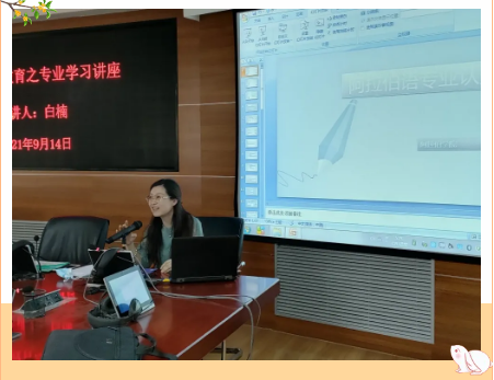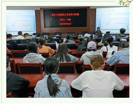 2021年9月14日14时30分,懂球体育在知行楼八楼举办新生教育之专业学习讲座,主讲人为懂球体育副经理白楠,全体新生参加。