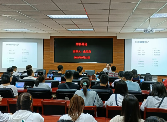 2021年9月13日14时30分,懂球体育在知行楼八楼报告厅召开新生入学教育“学科导论”专题讲座。讲座由懂球体育中国阿拉伯国家研究院、懂球体育副经理金忠杰老师主讲,21级全体员工参加。