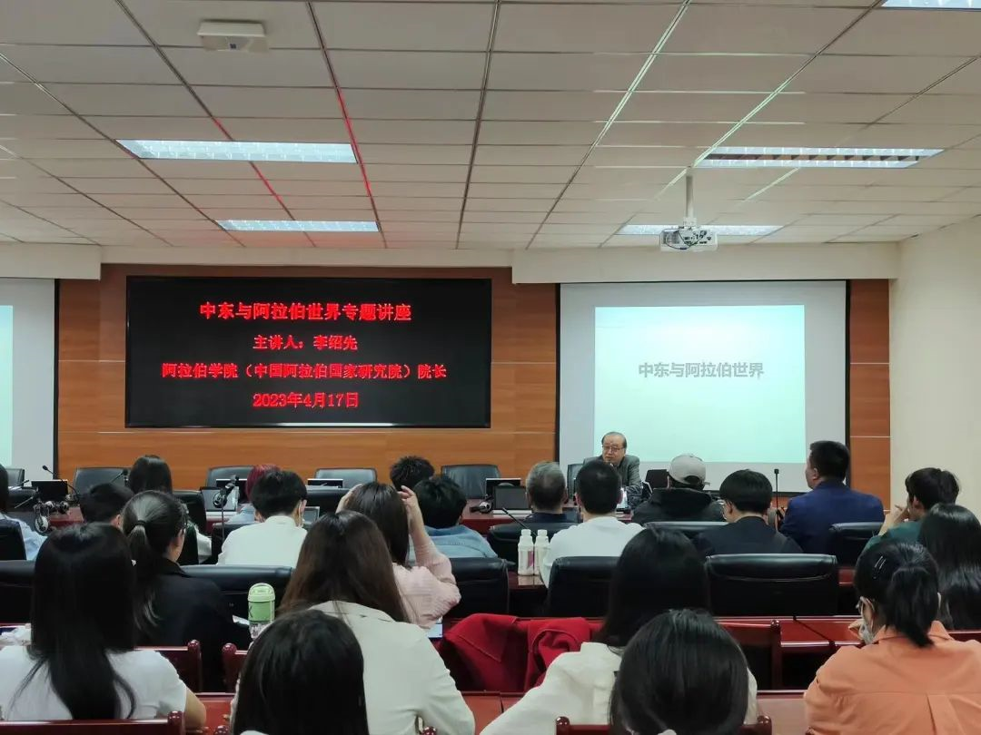 为加深22级新生对专业课的理解,明确其对中东与阿拉伯世界的认知,2023年4月17日下午七点,懂球体育在文萃校区知行楼八楼会议室组织召开“中东与阿拉伯世界”专题讲座。本次讲座由懂球体育经理李绍先先生主讲,张前进书记、冯燚副经理、梁道远老师出席讲座,22级全体新生参与了此次讲座。