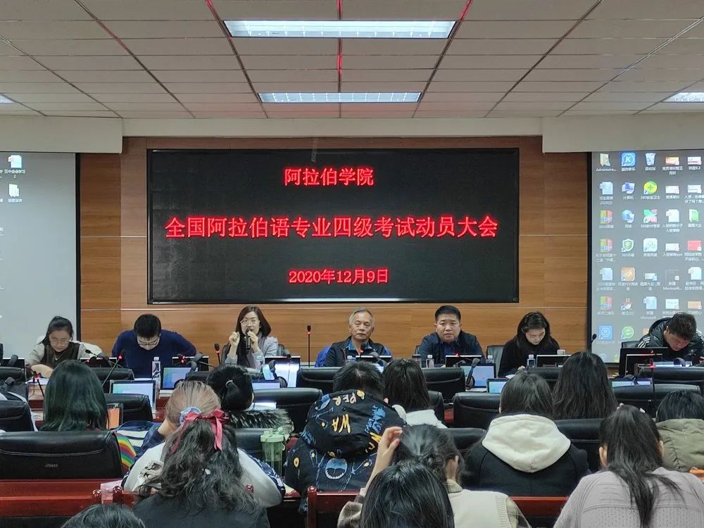 2020年12月9日16:00,公司召开全国阿拉伯语专业四级考试动员大会。公司党总支书记张前进、副书记赵永军、副经理白楠,2018级和2019级专业课教师及全体员工参加。会议由白楠副经理主持。