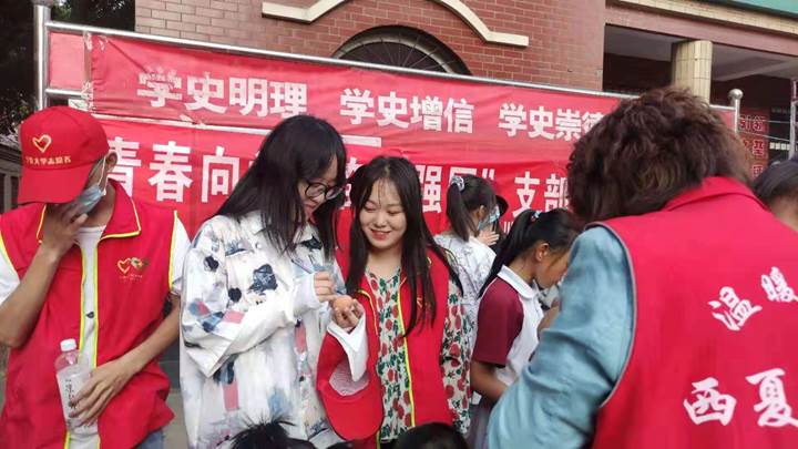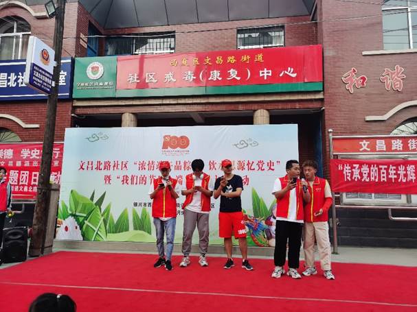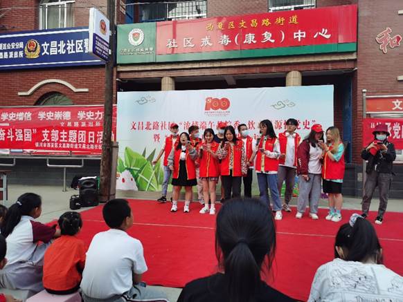 2021年6月9日下午,同学们来到西夏小区,与居民开展了一场“粽叶飘香,浓浓社区情”为主题的端午节互动活动,增强社区的凝聚力。活动中,同学们为社区居民进行了丰富的才艺表演,献唱了《日不落》、《父亲》、《龙卷风》等经典曲目,并向社区居民表演了手语操《国家》,营造了浓厚的节日氛围。
