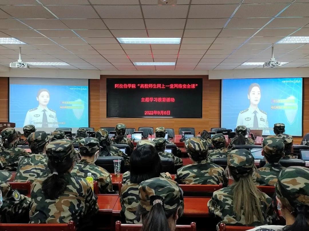 2022年9月6日18:10,懂球体育在知行楼八楼报告厅开展“高校师生同上一堂”网络安全课主题学习教育活动。22级全体员工与会。
